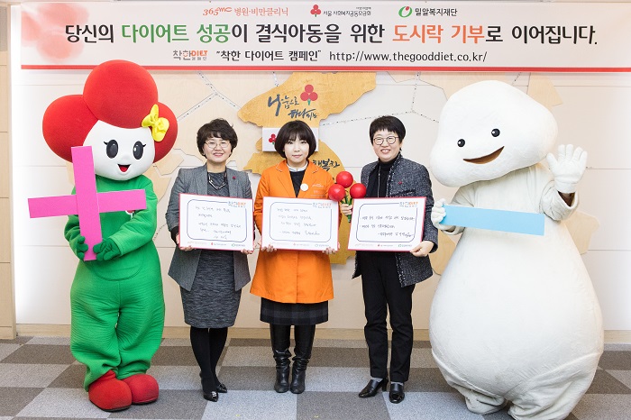 밀알복지재단은 지난 2월 23일(수) 오전에 365mc 비만클리닉(대표원장 손보드리, 이하 365mc), 서울사회복지공동모금회(회장 윤영석, 이하 서울 사랑의열매)와 서울시 중구에 위치한 사랑의 열매 회관에서 ‘착한 다이어트 캠페인’ 발대식을 진행했습니다.