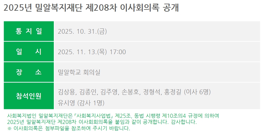 제208차 이사회회의록 공개