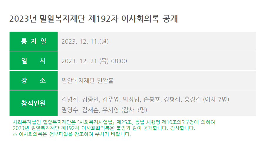 제192차 이사회회의록 공개