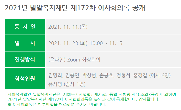 제172차 이사회회의록 공개