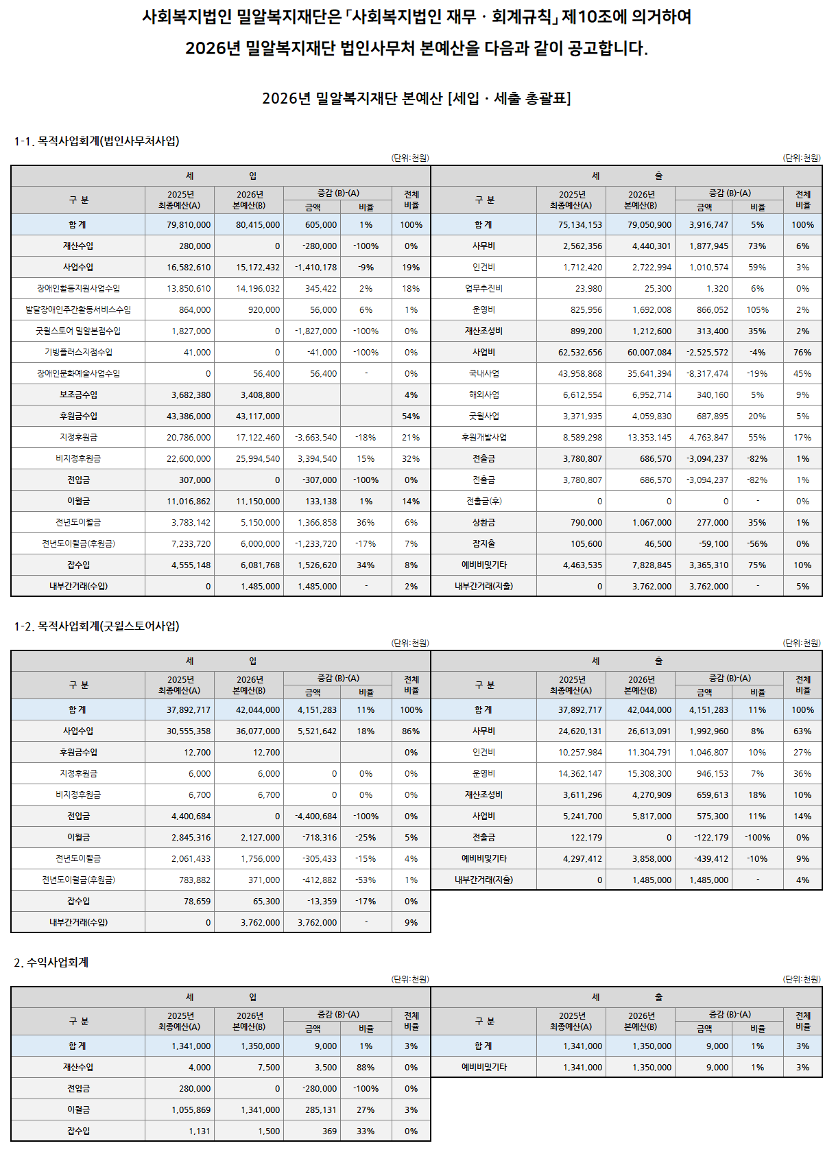 2025년 12월 밀알복지재단 법인사무처 결산보고 및 업무추진비 공개