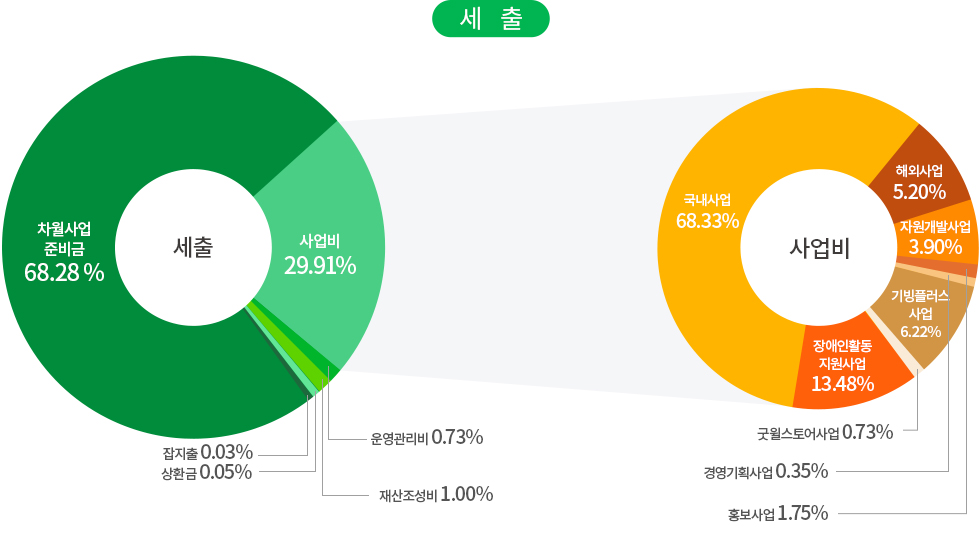 사업비 국내사업 국내아동결연 및 보육, 장애인의료 및 교육지원,