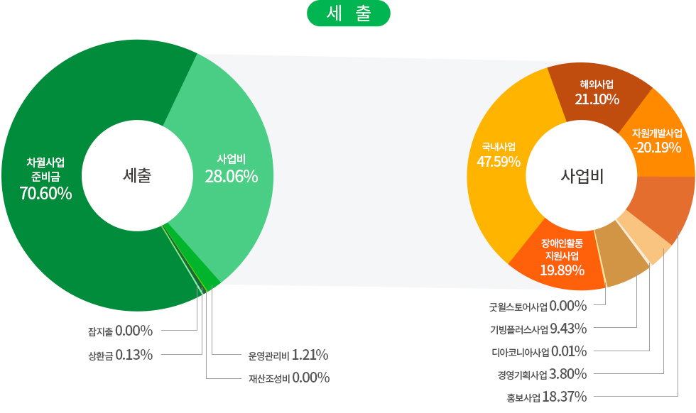 사업비 국내사업 국내아동결연 및 보육, 장애인의료 및 교육지원,