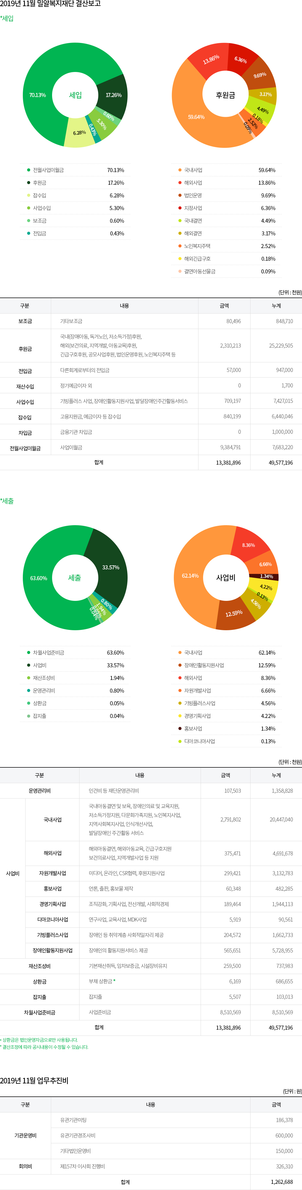 2019년 11월 밀알복지재단 법인사무처 결산보고 및 업무추진비 공개