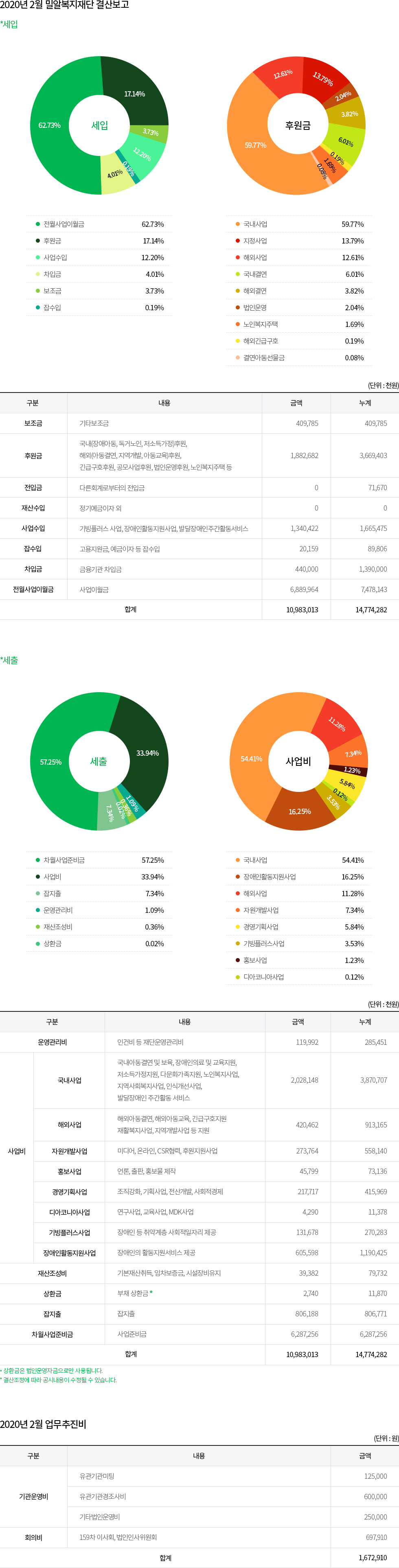 2020년 2월 밀알복지재단 법인사무처 결산보고 및 업무추진비 공개