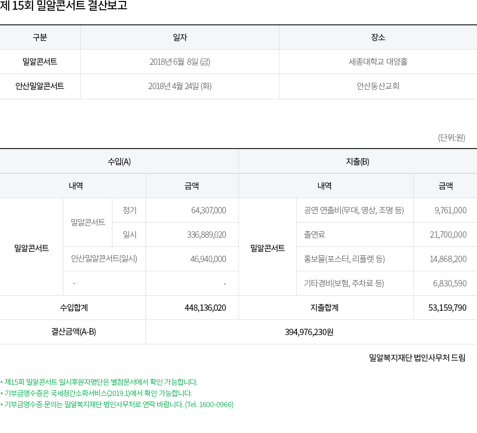 2018년 9월 밀알복지재단 법인사무처 결산보고 및 업무추진비 공개