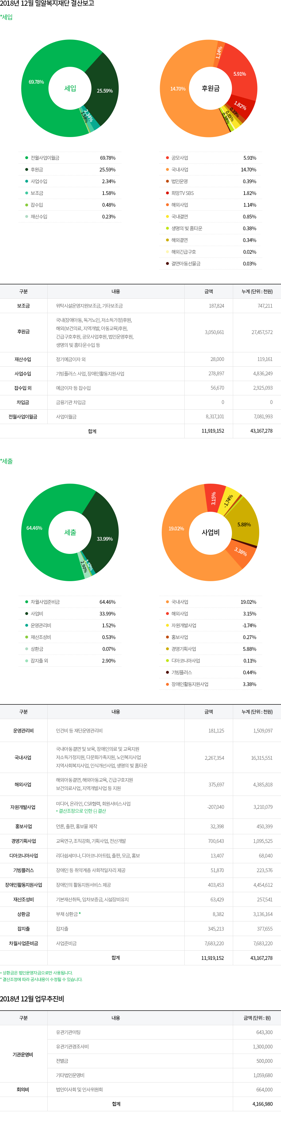 2018년 12월 밀알복지재단 법인사무처 결산보고 및 업무추진비 공개