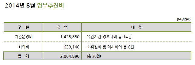 2014년 8월 밀알복지재단 업무추진비 공개