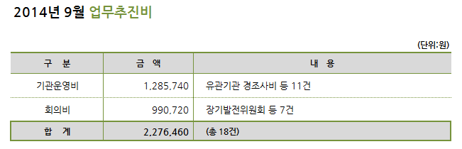 2014년 9월 밀알복지재단 업무추진비 공개