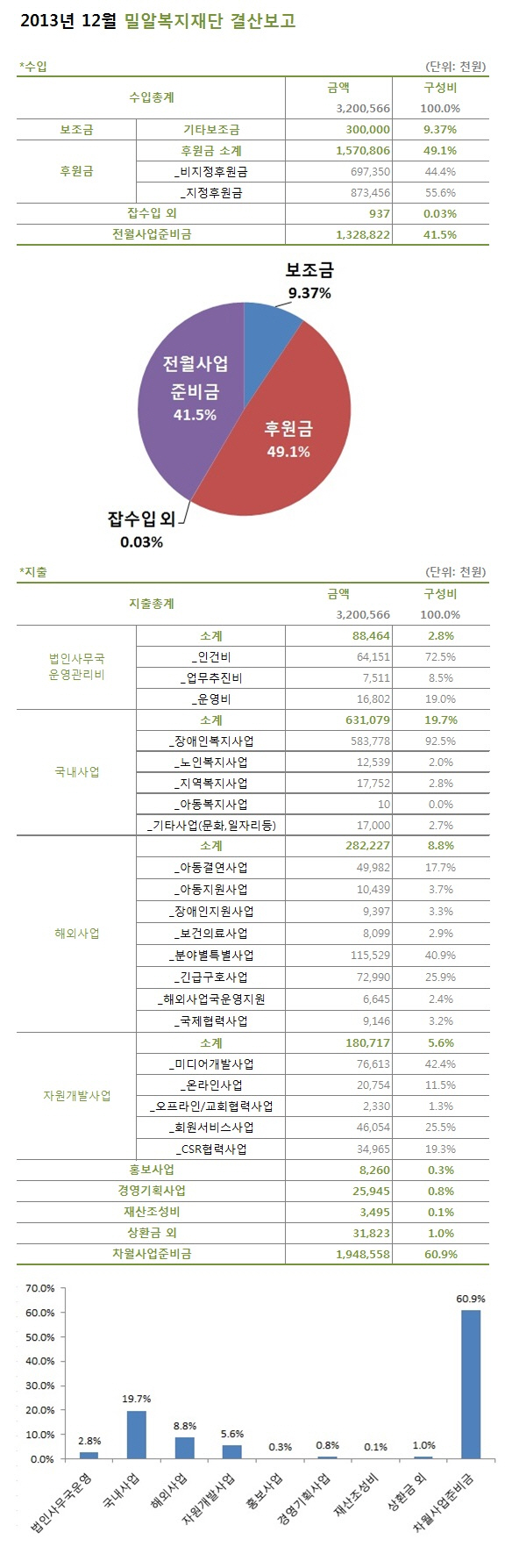 2013년 12월 밀알복지재단 결산보고