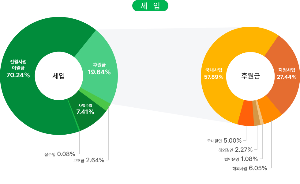 | 사업비 | 국내사업 | 국내아동결연 및 보육, 장애인의료 및 교육지원, 저소득가정 지원, 다문화가족 지원, 노인복지사업, 지역사회복지사업, 인식개선사업, 발달장애인작가양성지원사업, 발달장애인주간활동서비스, 장애인인식개선센터, 헬렌켈러지원센터 |