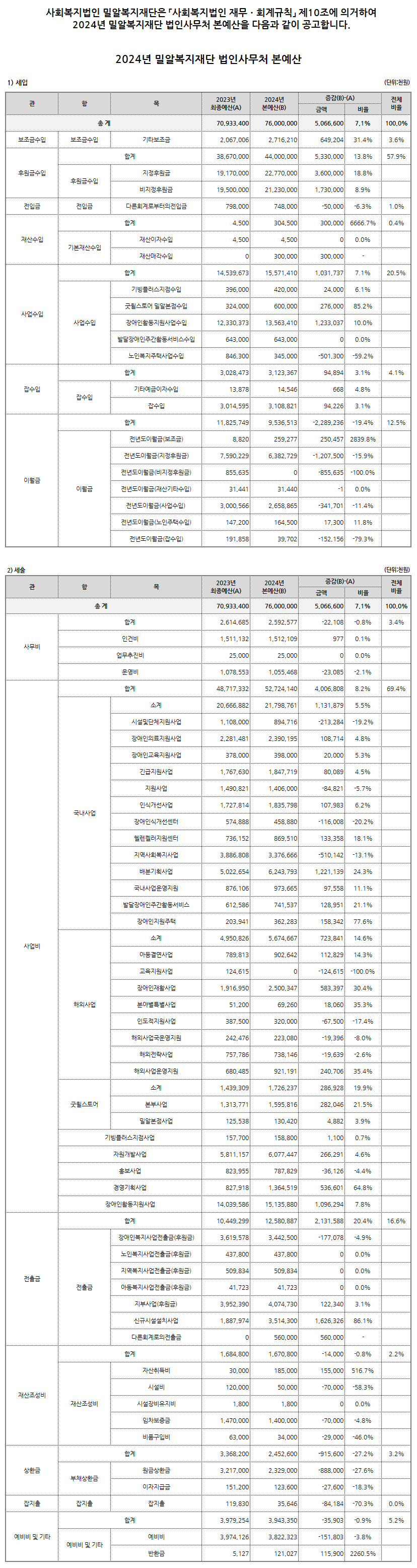 2024년 밀알복지재단 법인사무처 수익사업 본예산 공고
