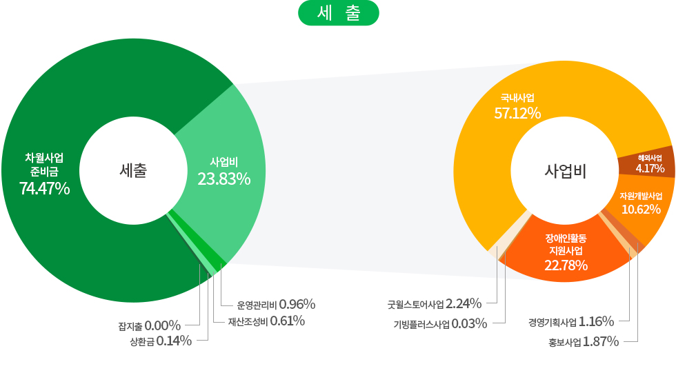 사업비 국내사업 국내아동결연 및 보육, 장애인의료 및 교육지원,