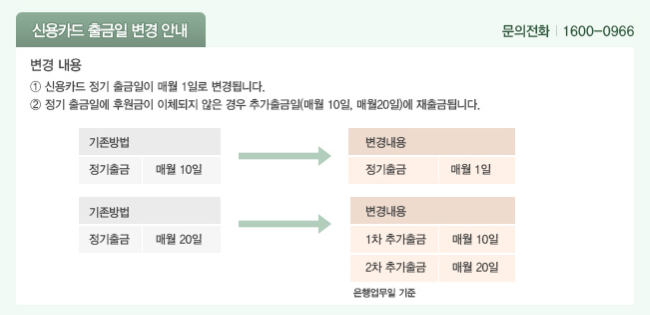 신용카드 출금일 변경안내