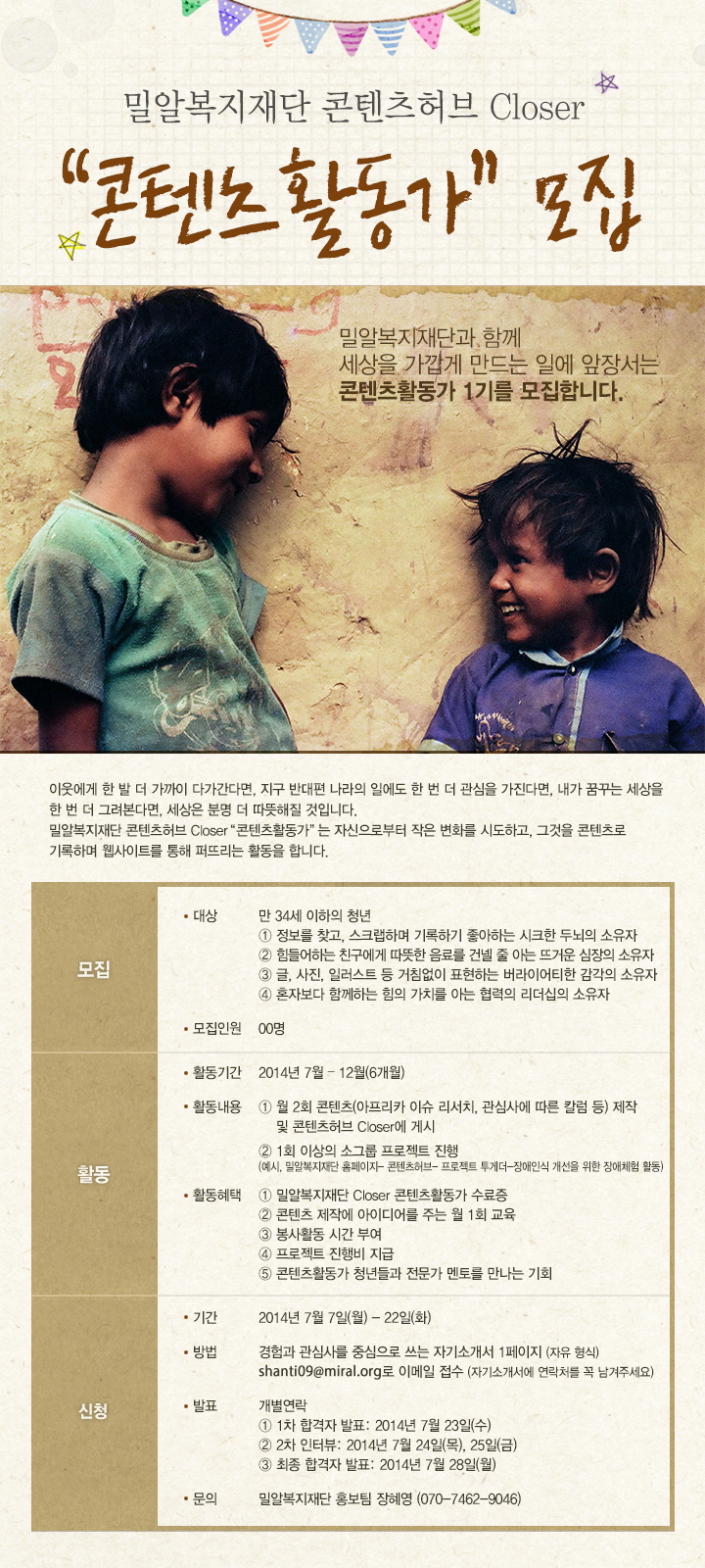 콘텐츠허브 Closer 1기 콘텐츠활동가 추가모집