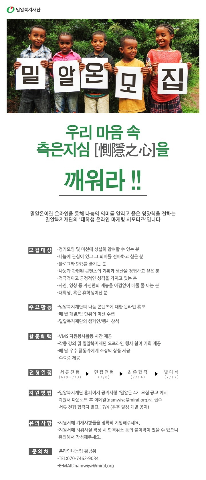 (기간연장) 온라인 서포터즈 밀알온 4기 모집