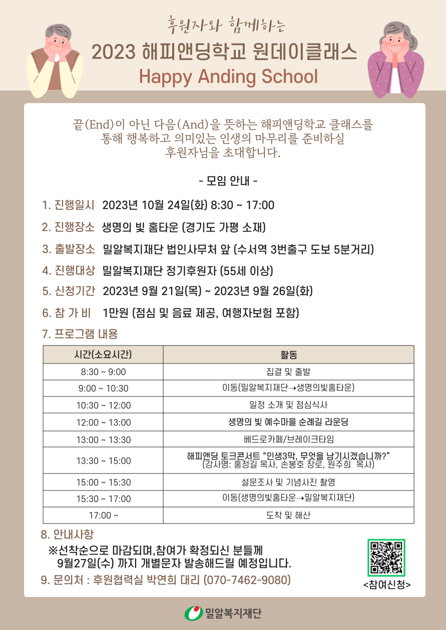 2023 '해피앤딩학교 원데이클래스' 참여자 모집(~9/26)