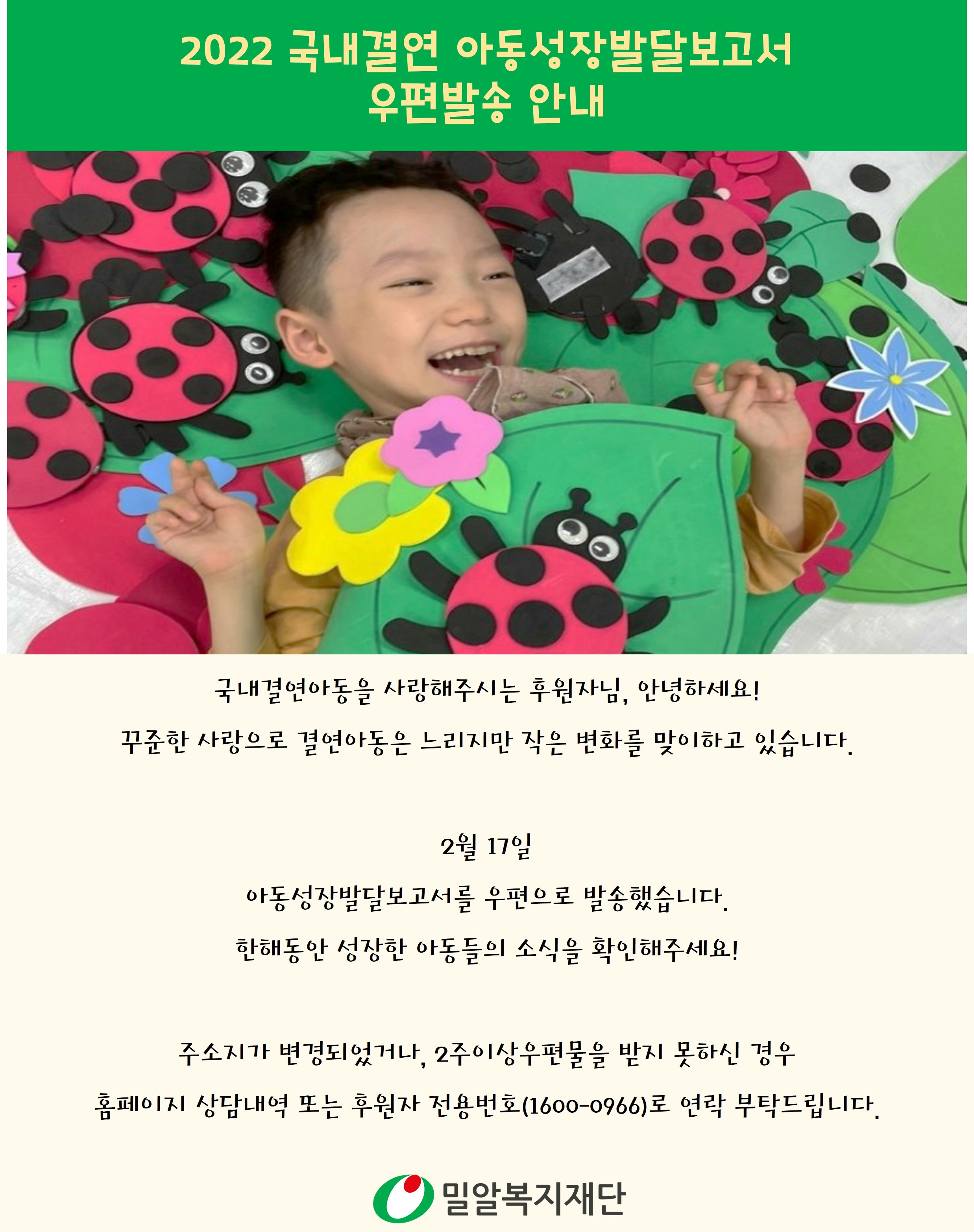 2022 국내결연 아동성장발달보고서 우편 발송 안내