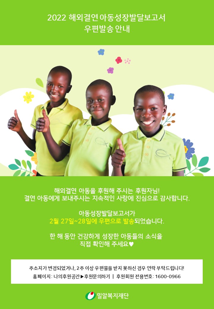 2022 해외결연 아동성장발달보고서 우편 발송 안내