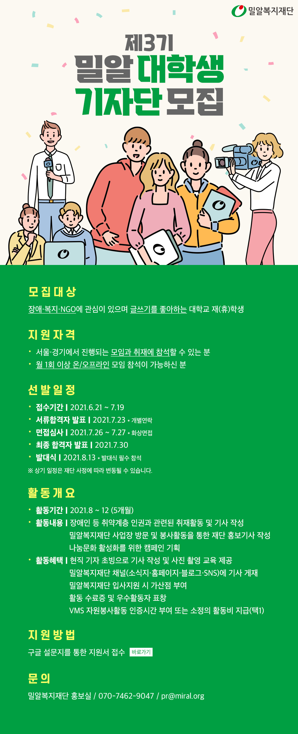 [마감] 제3기 밀알 대학생기자단 모집 (~7/19)