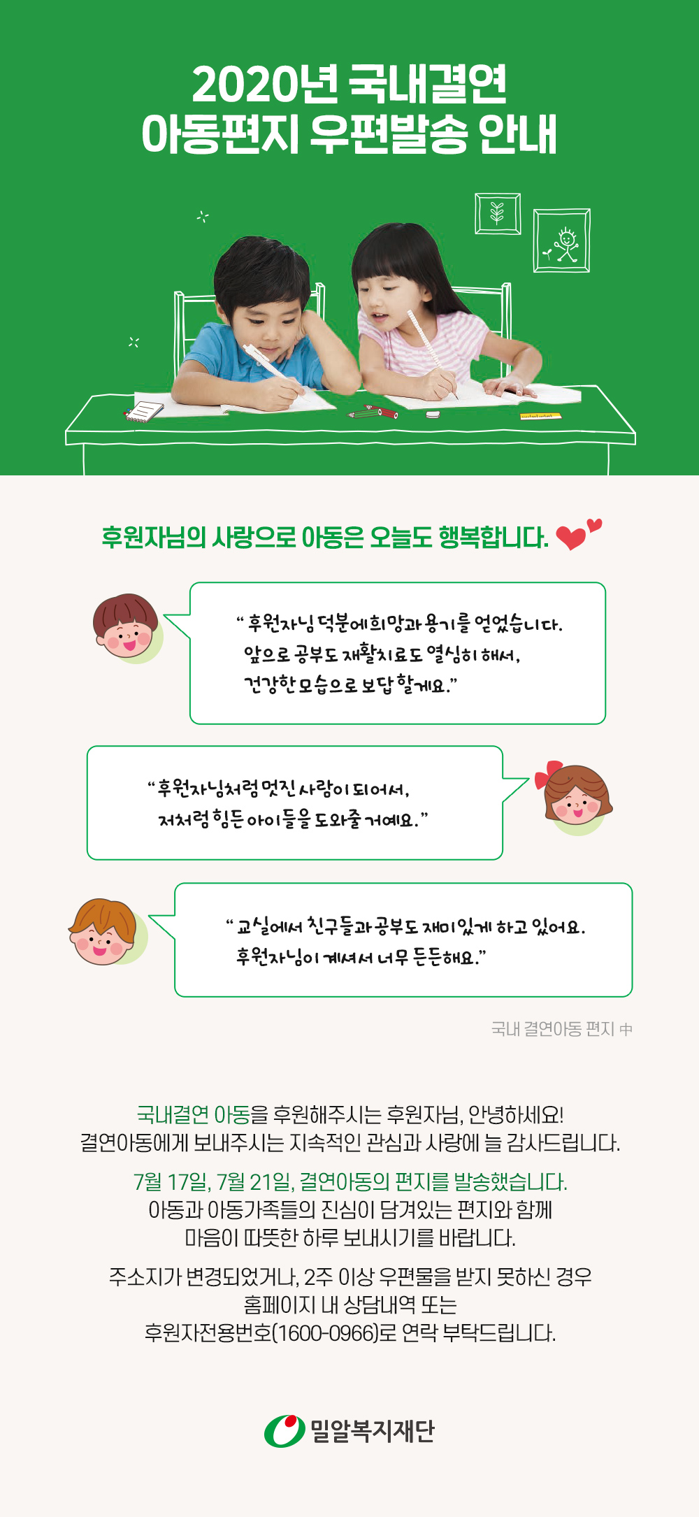 2020년 국내결연 아동편지 우편 발송 안내
