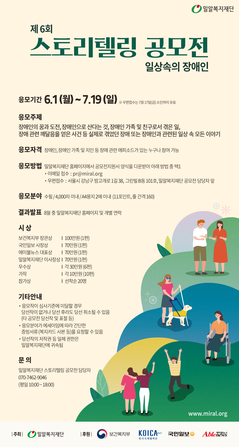 : 070-7462-9046(밀알복지재단 스토리텔링 공모전 담당자)