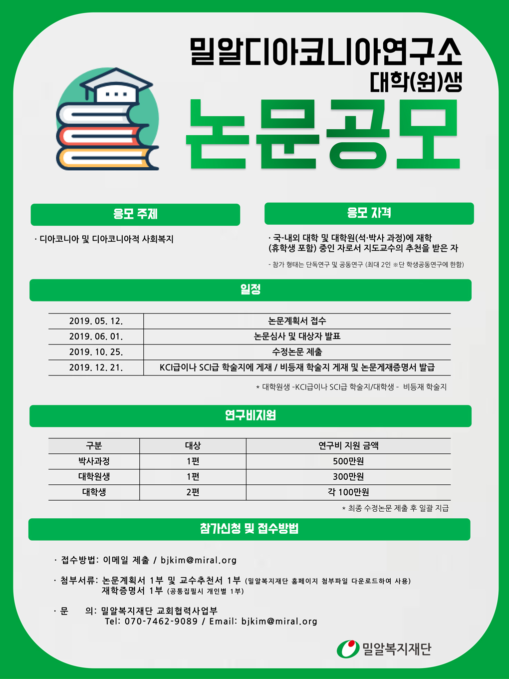 <마감> 밀알디아코니아 연구소 대학(원)생 연구논문 모집(~5/12)