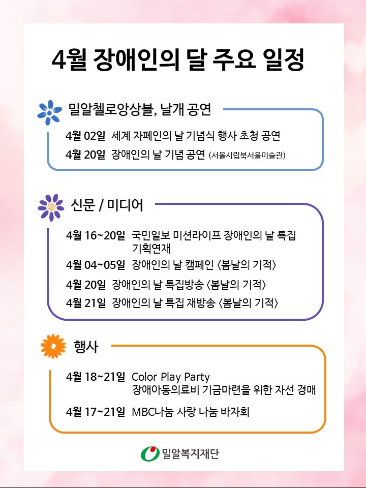 4월 20일 장애인의 날을 맞이하여 진행되는 법인사무처 주요 일정 안내입니다.