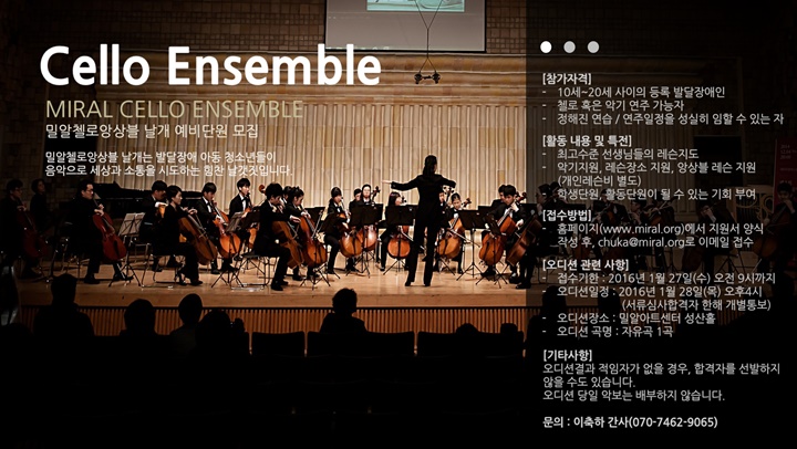 밀알 첼로앙상블 예비단원 선발 오디션 안내문
