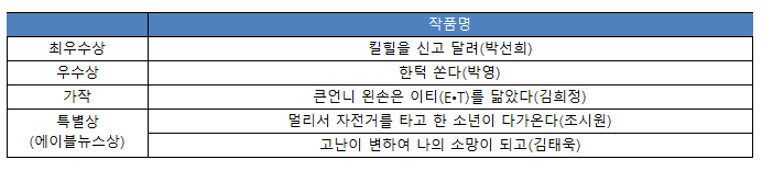 당선되신 분들께 축하를 드리며, ‘장애’에 대해 관심을 가지고 응모해 주신 모든 분들께 감사드립니다. 또한 아래와 같은 사유로 위의 작품들이 당선되었음을 알려드립니다.