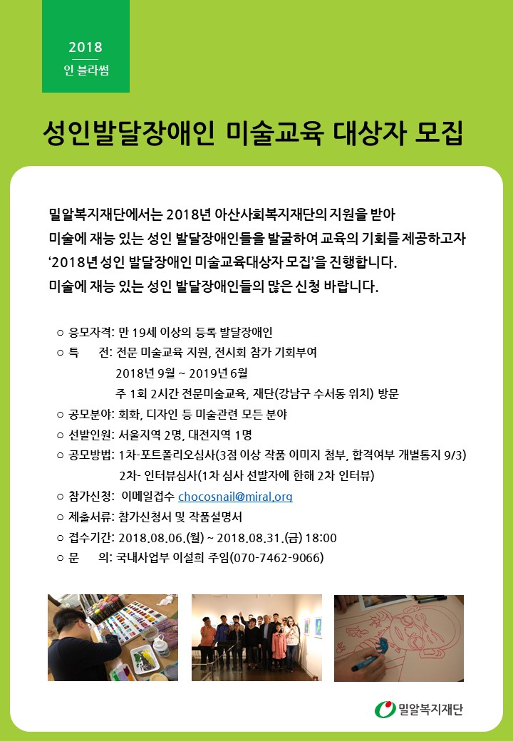 <마감> 성인발달장애인 미술교육 대상자 모집(~8/31)