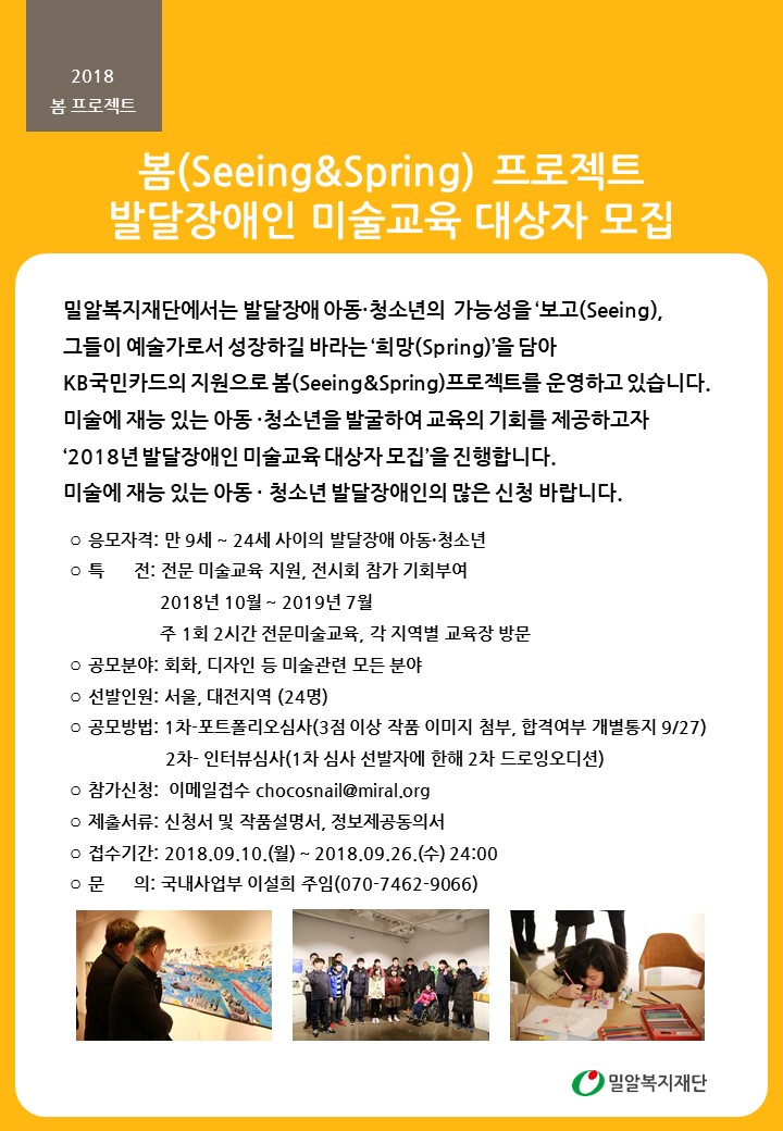 <마감> 2018년 '봄' 프로젝트 미술교육 대상자 모집(~9/26)