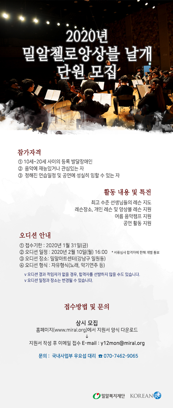 [마감] 2020년 밀알첼로앙상블 날개 단원 모집 (~1/31)