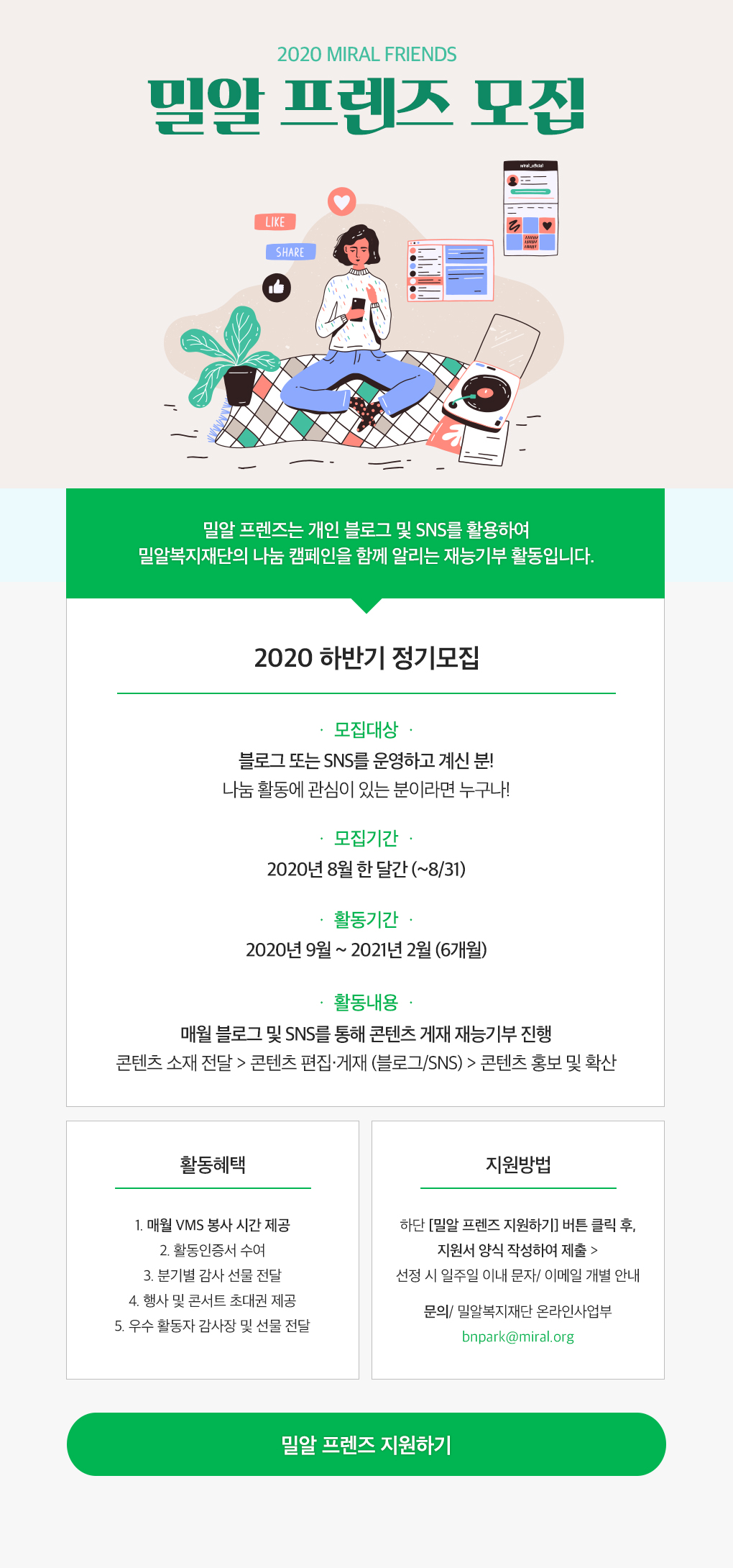 [마감] 온라인 재능기부 캠페인 ‘밀알 프렌즈’ 모집(~8/31)