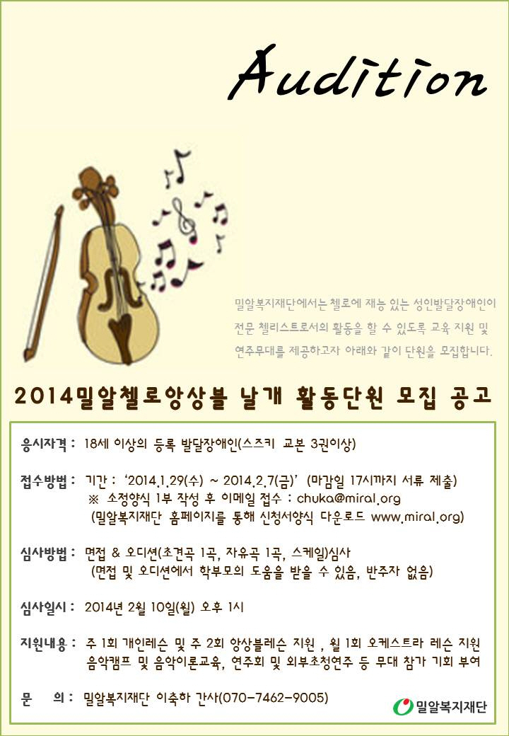 밀알첼로앙상블 날개 활동단원 오디션 공지