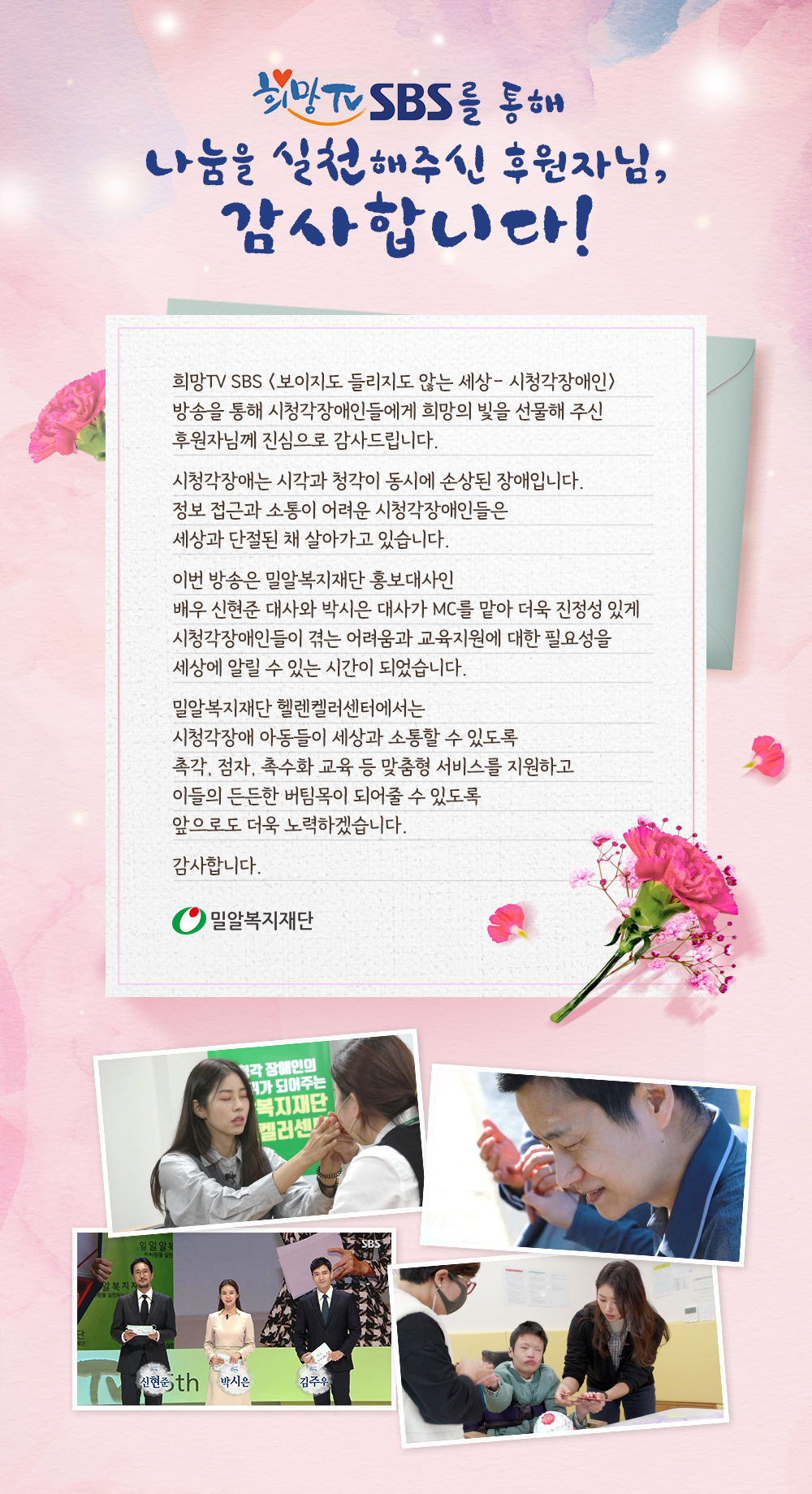 희망TV SBS를 통해 나눔을 실천해주신 후원자님, 감사합니다!