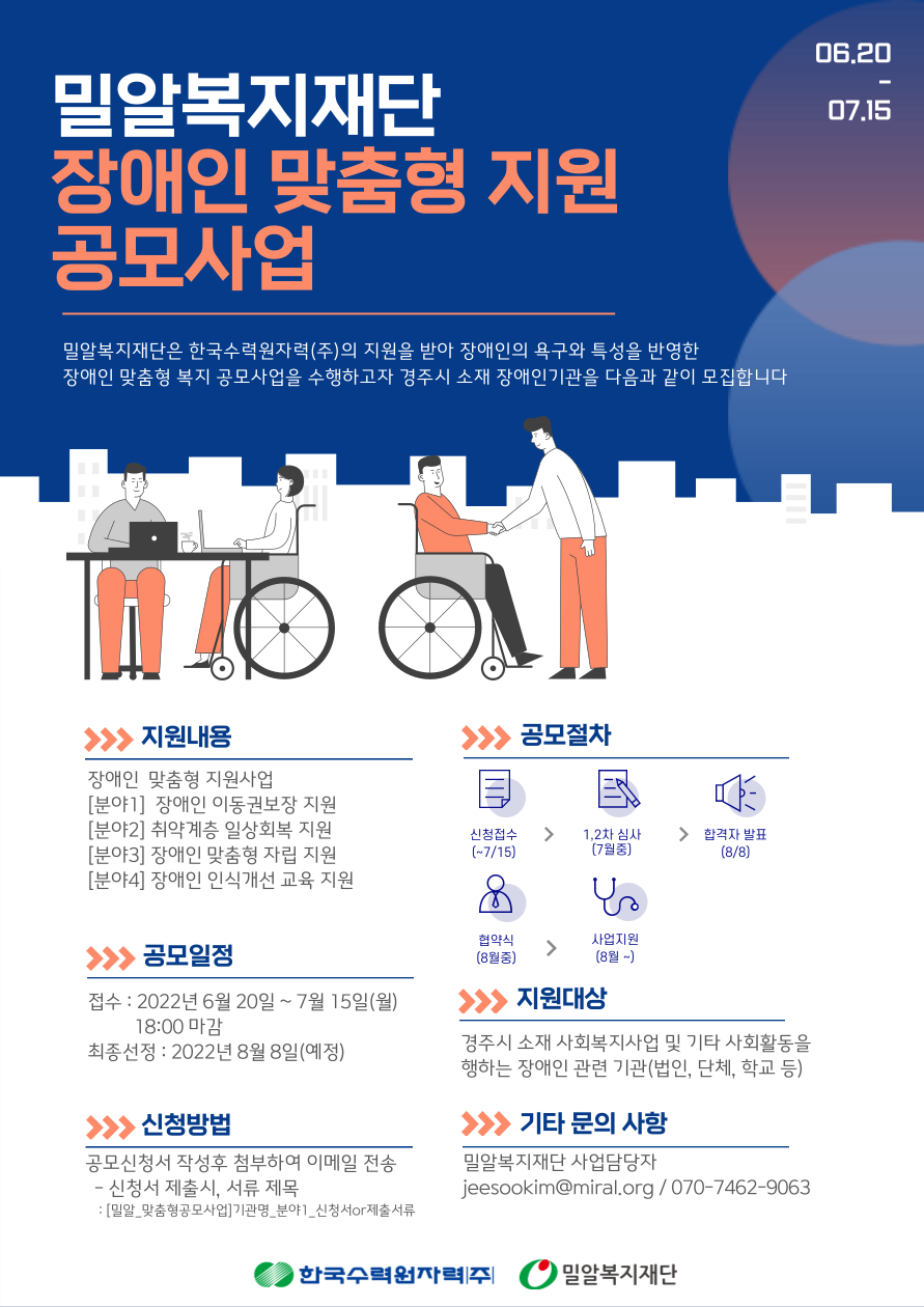 [마감] 2022 한국수력원자력과 함께하는 장애인 맞춤형 공모사업 신청 안내 (~7/15)