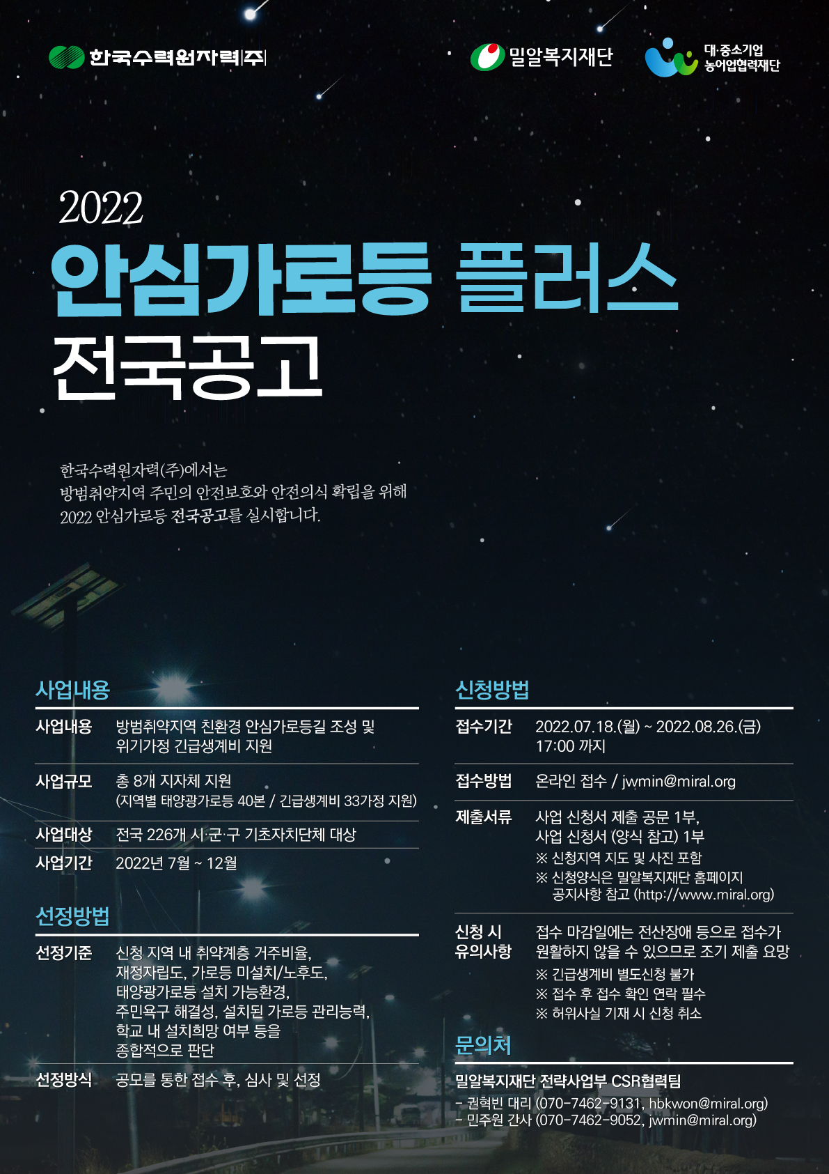 [마감] 2022년 안심가로등 지원사업 사업지역 전국공고 (~8/26)
