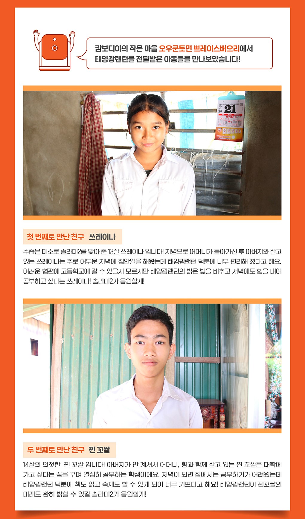 [해외 지원후기] 세상을 밝히는 희망의 빛! '라이팅칠드런' 태양광랜턴 지원후기