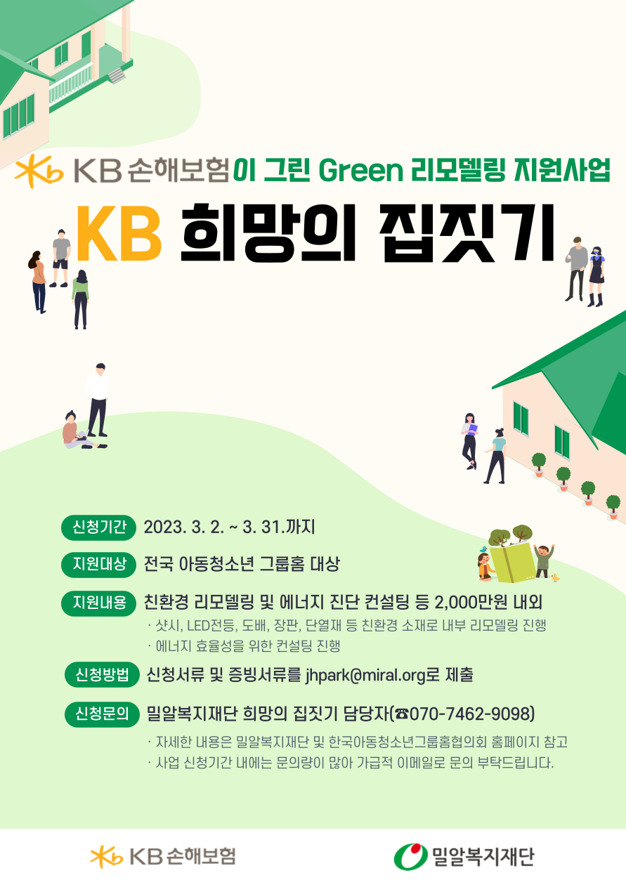 [마감] KB손해보험이 그린 Green 리모델링 지원사업 ‘KB희망의 집짓기’ 신청 기관 모집 (~3/31)