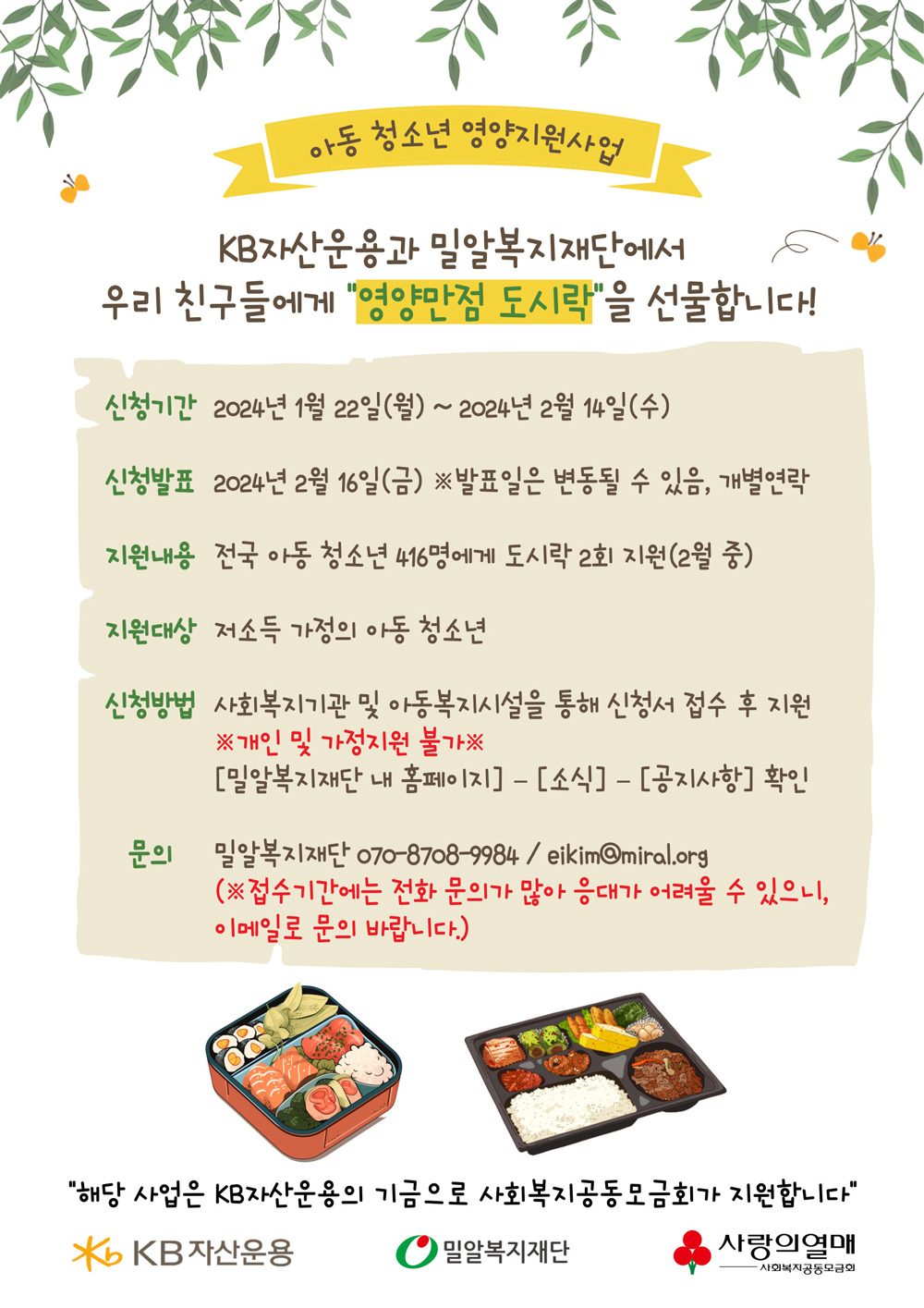 [마감] KB자산운용과 함께하는 2024년 아동 청소년 영양지원사업 대상자 모집 안내 (~2/14)