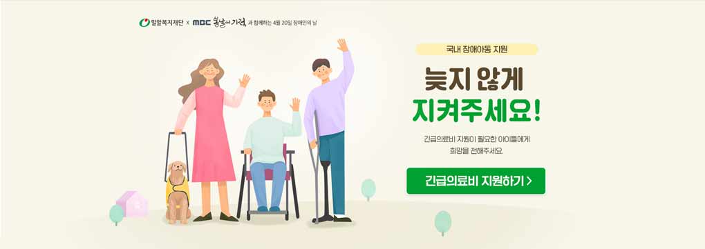 장애아동 가정에게도 봄과 같이 따뜻한 기적이 꽃필 수 있도록 늦지 않게 지켜주세요.