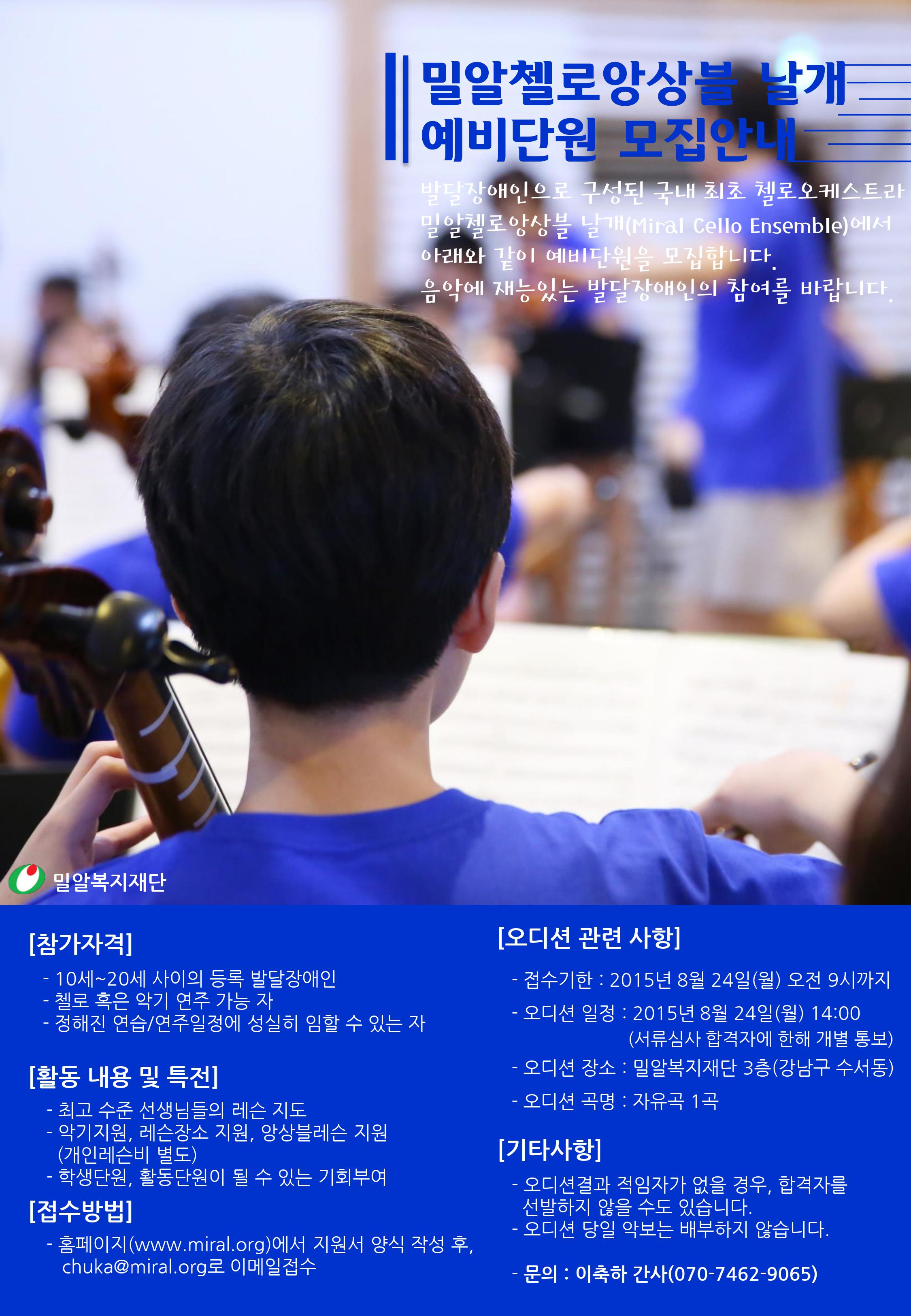 (종료)밀알첼로앙상블 '날개' 예비단원 모집안내