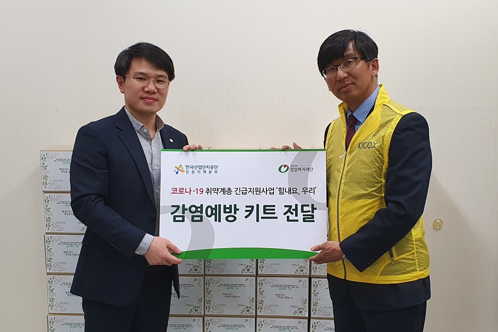 밀알복지재단 인천지부(지부장 황대벽)와 한국산업단지공단 인천지역본부(본부장 최종태)는 코로나19 취약계층의 감염예방을 위해 인천 거주 저소득 장애아동 가정 50곳에 ‘힘내요 키트’를 전달한다고 27일(금) 밝혔다.