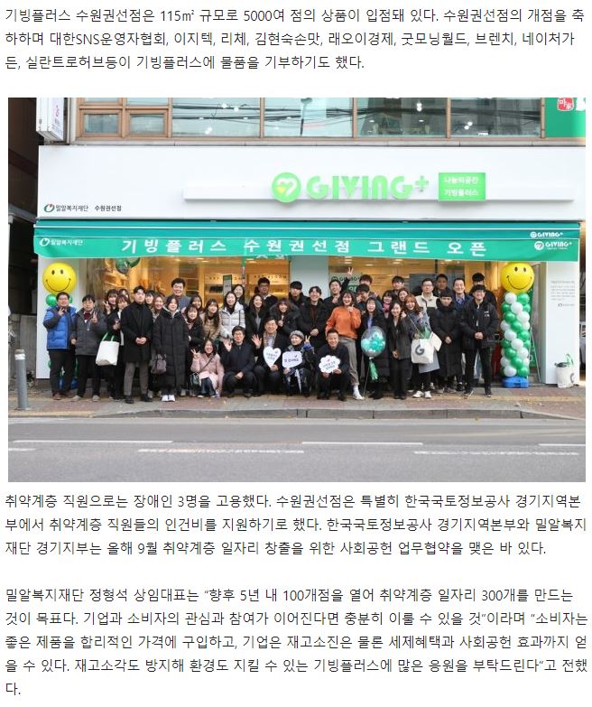 [뉴스웍스] 밀알복지재단, 기빙플러스 '10호점' 수원권선점 오픈