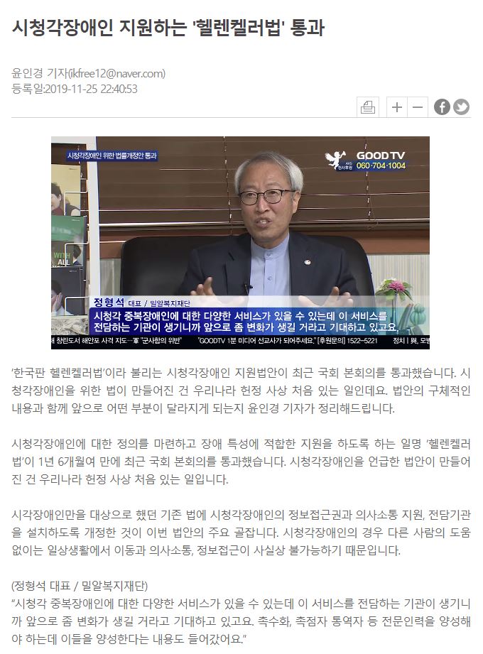 [굿티비뉴스] 시청각장애인 지원하는 '헬렌켈러법' 통과