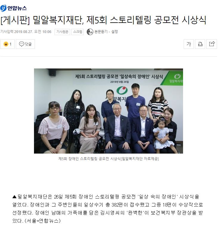 [연합뉴스] 밀알복지재단, 제5회 스토리텔링 공모전 시상식