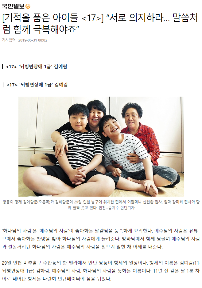 [국민일보][기적을 품은 아이들 <17>] “서로 의지하라… 말씀처럼 함께 극복해야죠”