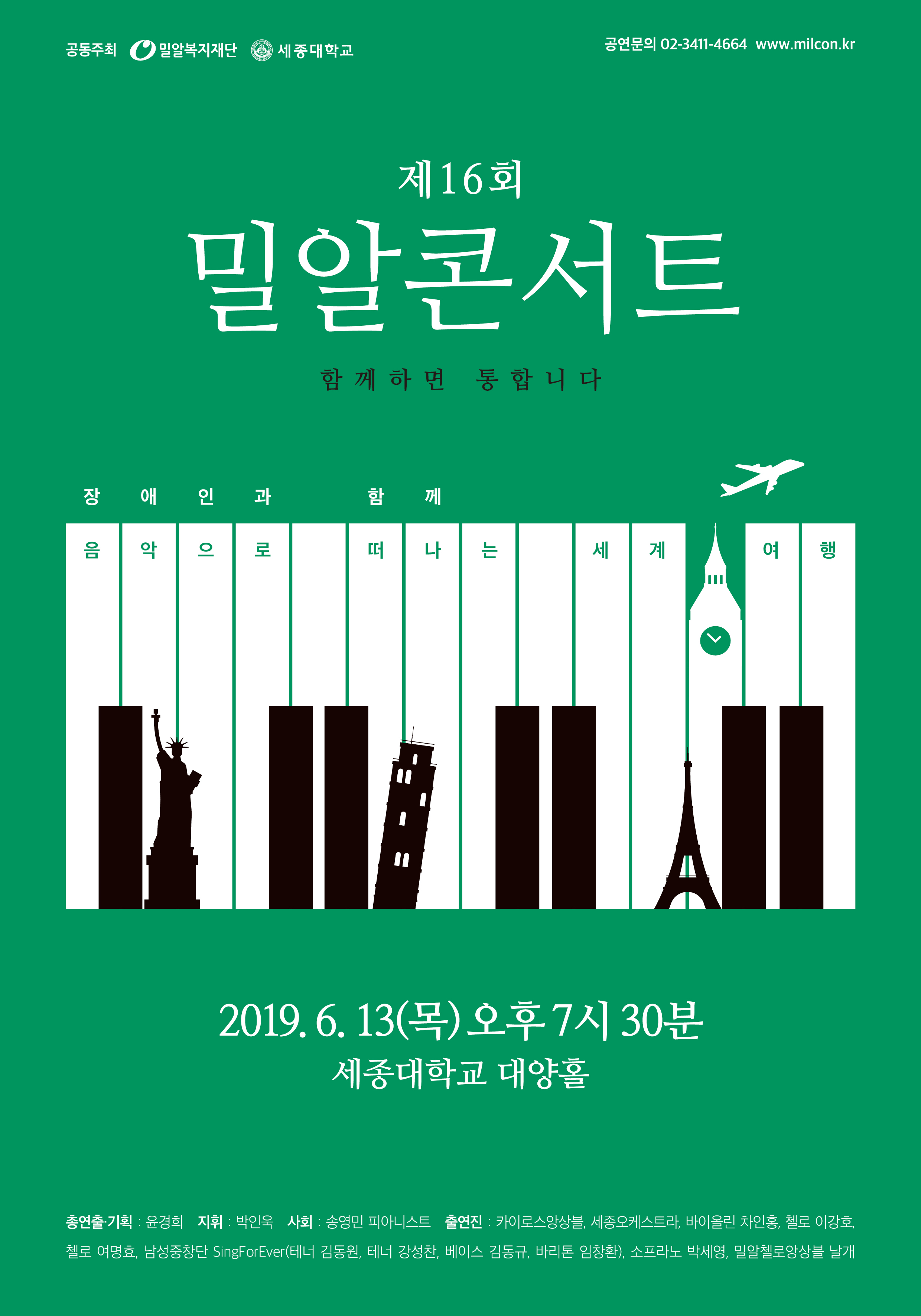■ 6월 13일(목) 오후 7시 30분, 세종대학교 대양홀에서 제16회 밀알콘서트 개최