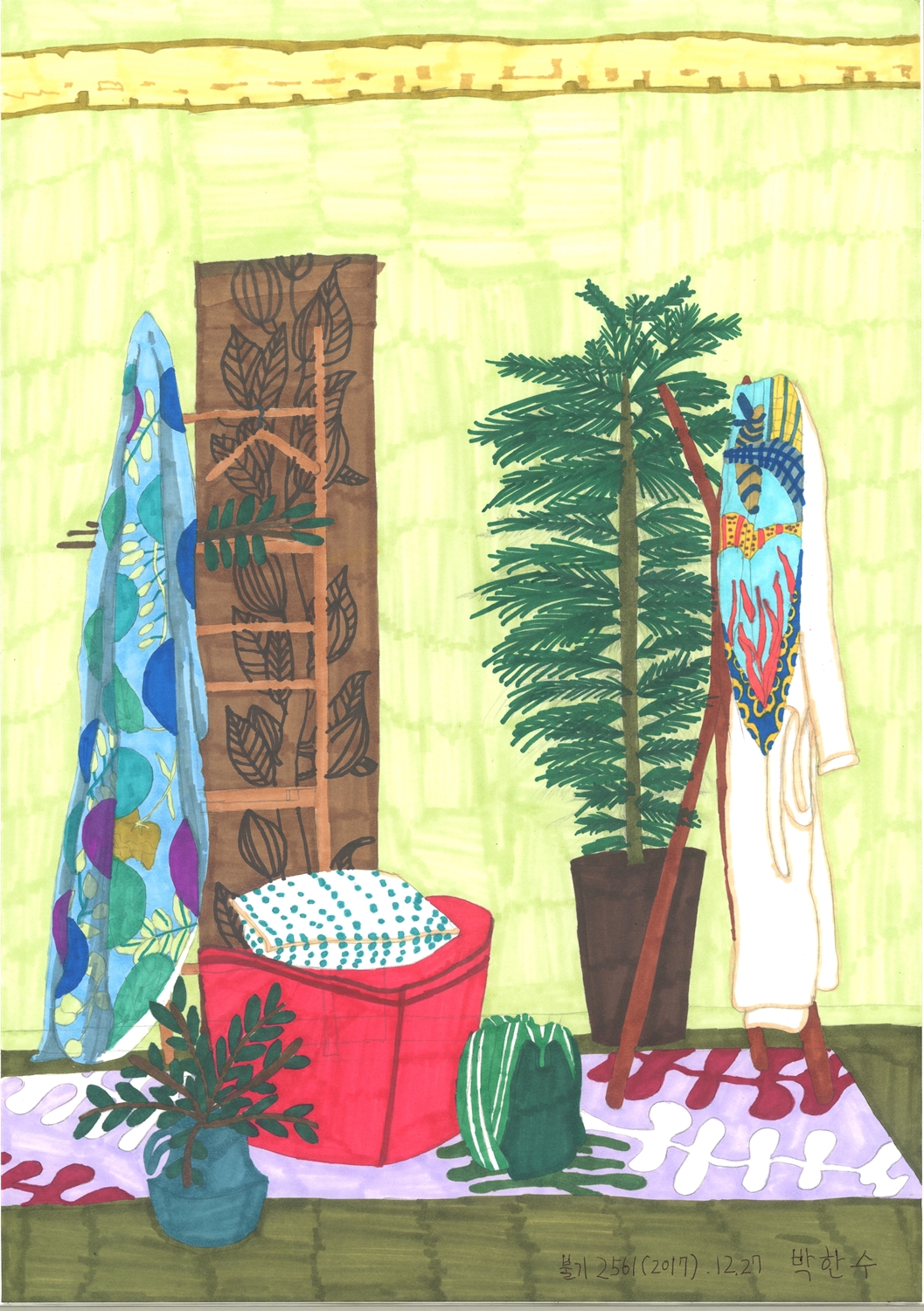 전시작품 2. 거실풍경, marker on paper, 296x419mm, 2017 ⓒ박한수
